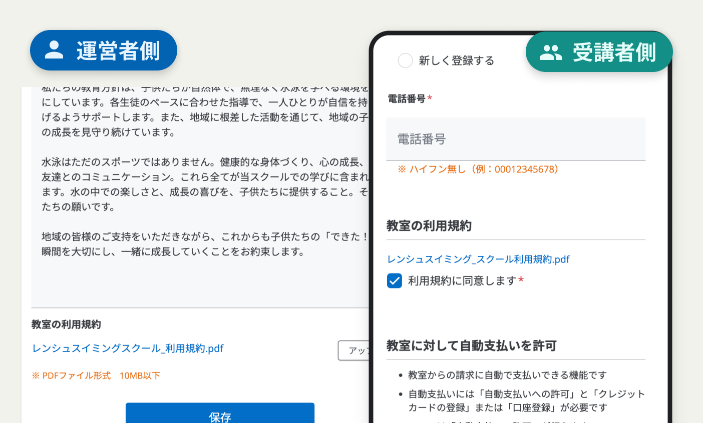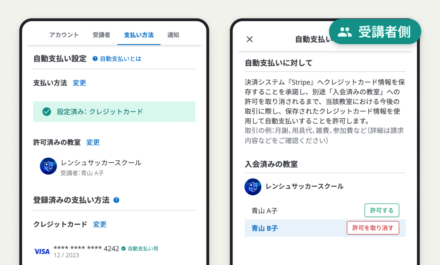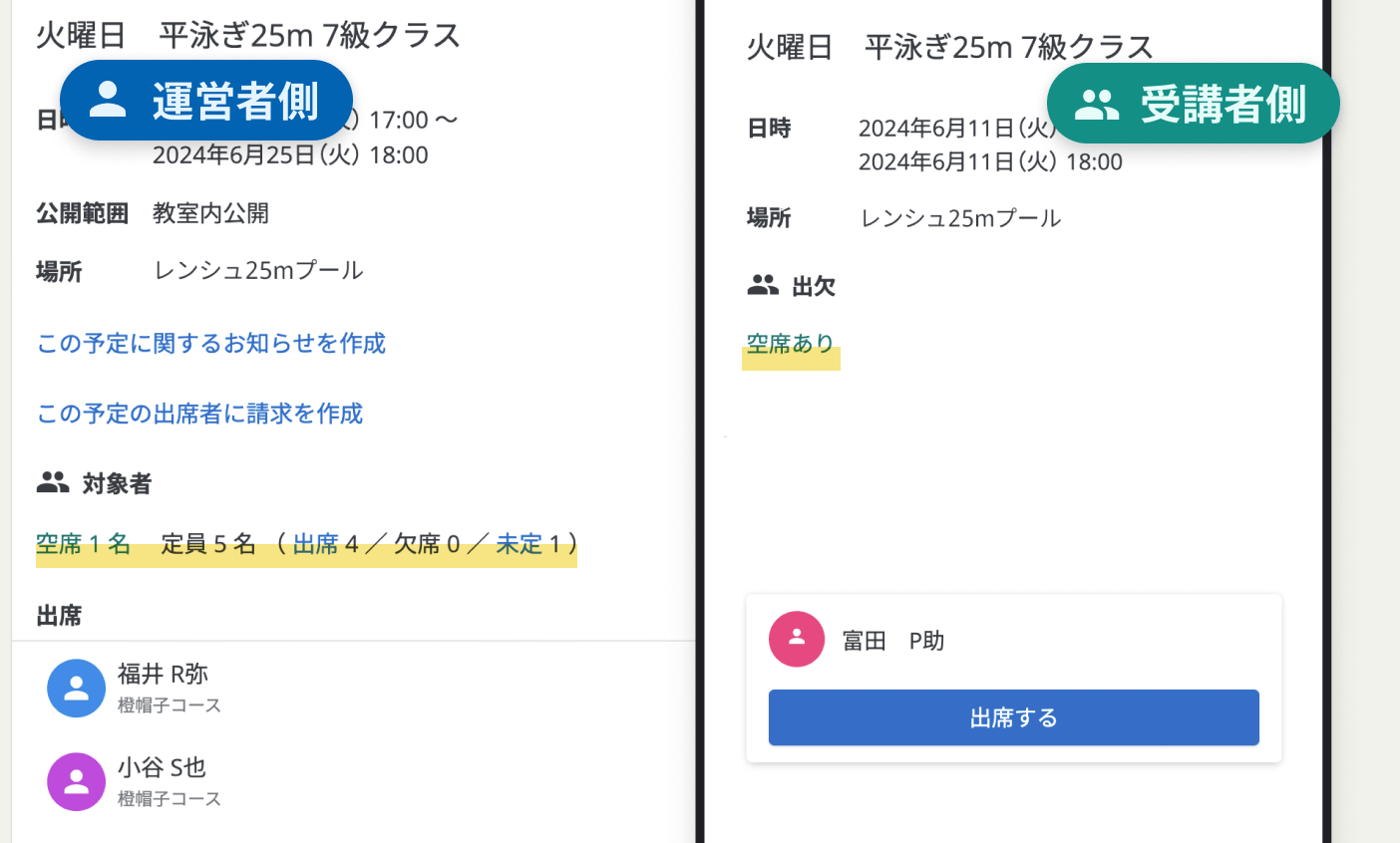 新しいお知らせの公開や請求の作成タイミングで受講者に通知がされます。また、受講者が教室に入会や出欠の変更が発生した場合に運営者にも通知がされます。